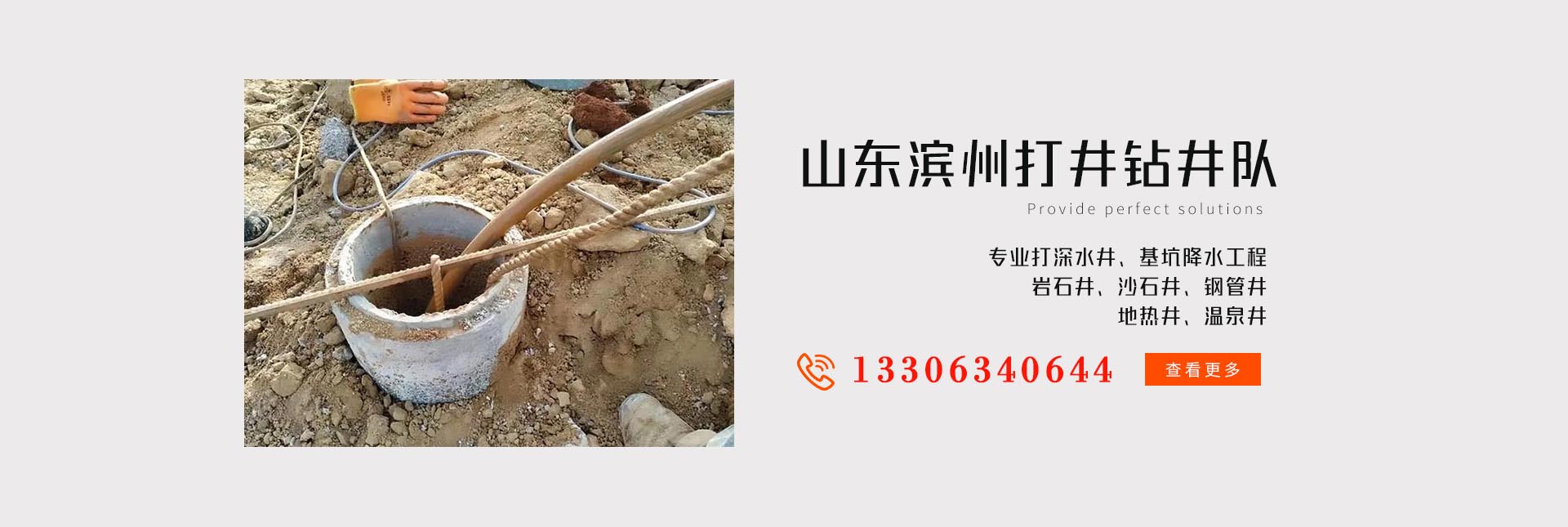更多>>山东省滨州市打井钻井队电话【133-O634-0644】专业提供滨州打水井、滨州基坑降水、打深水井、打大井、工程降水服务等。滨州钻井队服务全市多年,设备齐全,滨州打井价格更具优势。滨州打井钻井队总部位于济南,服务滨州全市及区县农村地区,滨州专业打深水井,承接工地基坑降水工程,40余台套专业钻井设备,可提供岩石井、地热井、温泉井、地热井施工、物探、温泉井施工等。滨州打井欢迎咨询我们。